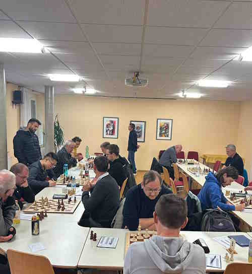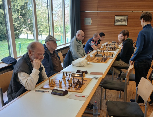 Am 7. Spieltag der Bereichsliga Süd 4 kam es zum Duell zwischen dem SK Singen und dem SC Überlingen. In einer spannenden Begegnung setzte sich Singen souverän mit 6½ : 1½ durch und untermauerte damit seine starke Saisonleistung. Die Singener Mannschaft trat mit einer geschlossenen Teamleistung auf und konnte an allen Brettern überzeugen. Besonders hervorzuheben sind die klaren Siege an den Brettern 4 - 8 durch Kai, Marcel, Sadik, Klaus und Raphael. Damit sicherten sie frühzeitig den Mannschaftserfolg. An den Spitzenbrettern gab es spannende Duelle, welche jeweils Remis endeten. Damit steuerten Jonas, Friedhelm und Arejou weitere 1,5 Punkte bei.