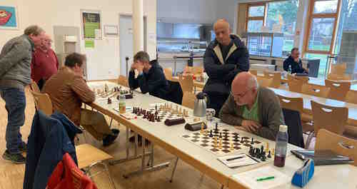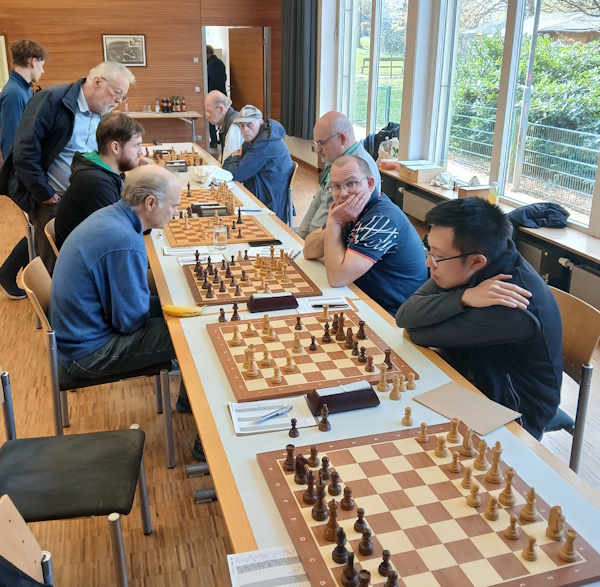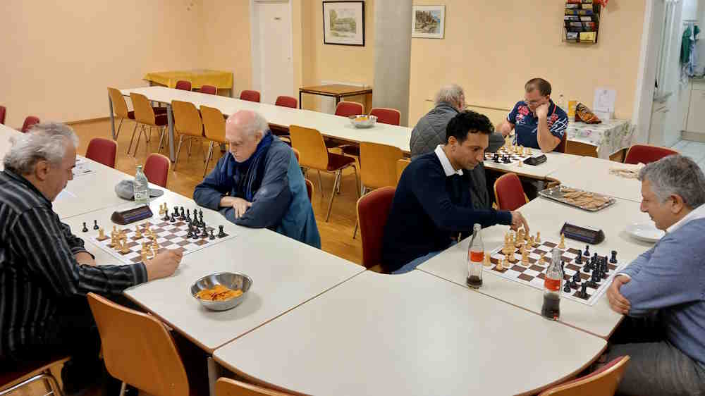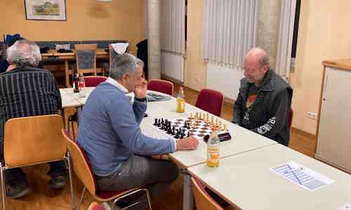 Andi einigte sich in ausgeglichener Stellung mit seinem Gegner auf ein Remis, während auch Manni eine umkämpfte Partie mit einem Unentschieden beendete. Friedhelm konnte sich mit einer schönen Partie durchsetzen und einen vollen Punkt für unser Team holen. Sadik zeigte erneut seine Klasse und bewies mit einem weiteren souveränen Sieg seine spielerische Stärke.