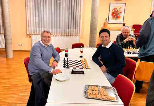 Sobald bekannt geworden ist, dass Amins Bruder Amir heute den Schachclub Singen besucht, war klar, dass das wieder mal ein ganz besonderer Abend werden wird. Mit Amir ist aufgrund seiner lebendigen Art und seiner Faszination zum Schachspiel jedes Mal ein sehr unterhaltsamer Abend vorprogrammiert. Kein Wunder, dass das Vereinsheim sehr gut besucht war und wir einen sehr schönen Abend mit vielen Witzen und Gesprächen über die verschiedensten Themen hatten. Vielen Dank an alle Helfer, die dem Vereinsabend durch zahlreiche Leckereien einen besonderen Rahmen verliehen haben.
